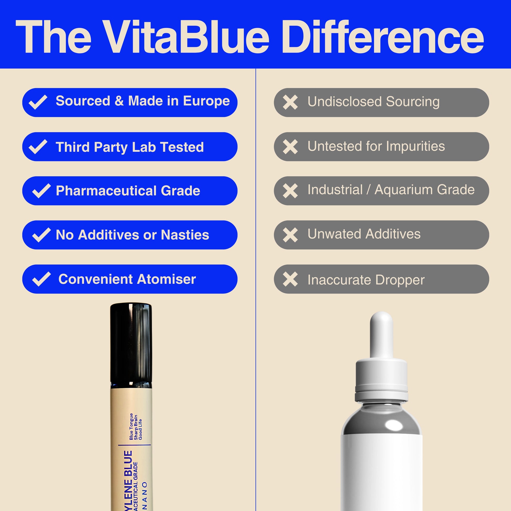General Information : Methylene Blue may support cellular energy production and brain health. However, effects can vary based on physiology, body weight, sensitivity, and concurrent supplement or medication use.